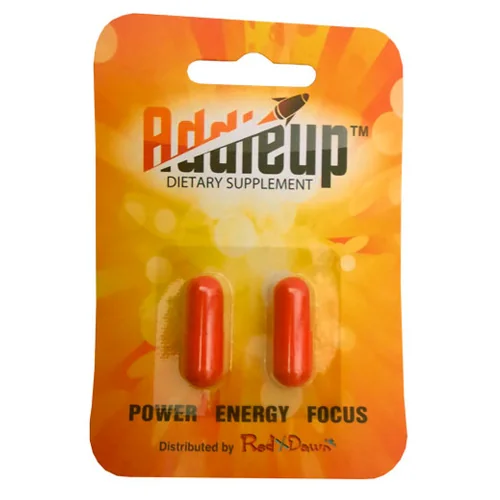 Box Qty 24 Case Qty 192 There are 3 different stimulants in AddieUP. These stimulants prolong energy, focus and concentration. Each of the stimulants help improve energy, cognitive function, alertness, endurance, focus, and stamina. Taking this supplement may allow you to better complete complex tasks, including writing, studying, and mental clarity.