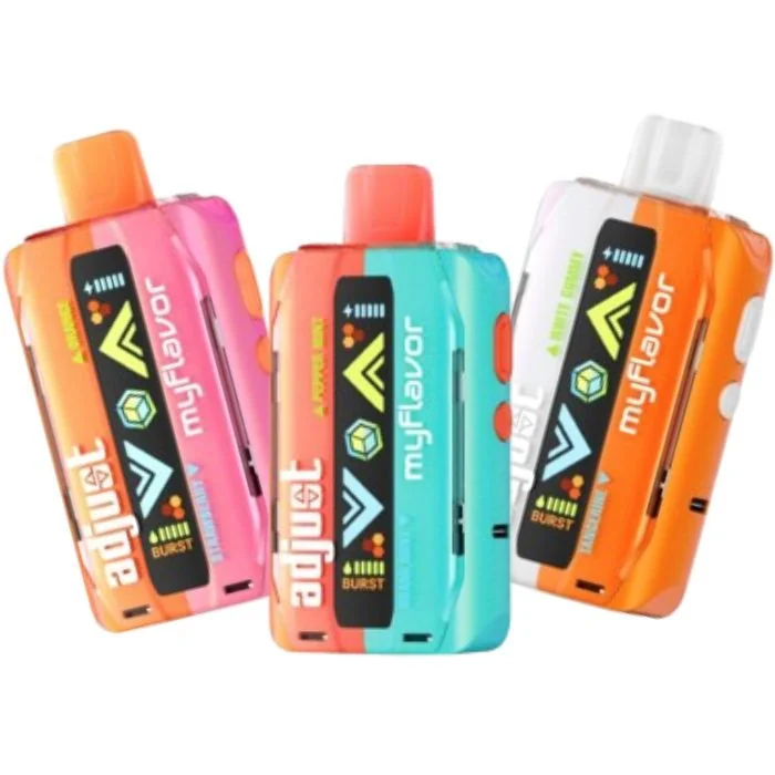 Introducing Adjust MyFlavor Vape 40K, the 20mL pre-filled e-liquid disposable device, engineered for vape enthusiasts seeking both performance and flavor. Powered by a 5% (50mg) nicotine strength and a robust 800mAh Type-C rechargeable battery, this device delivers consistent and powerful vaping. With two distinct modes—Normal (40,000 puffs) and Burst (20,000 puffs)—it adapts to your preferences. The 6-level adjustable flavor settings ensure a personalized experience, all displayed on an interactive screen. The bite-friendly mouthpiece adds comfort for extended use, and the fully customizable design lets you fine-tune your vaping sessions. Adjust MyFlavor Vape 40K Features: High Puff Count: Up to 40,000 puffs in Normal Mode or 20,000 in Burst Mode. Flavor Customization: 6 adjustable flavor levels for a tailored experience. E-Liquid & Battery Indicators: Convenient display of e-liquid and battery levels. Nicotine Strength: 5% (50mg) for a satisfying hit. Battery Capacity: 800mAh, rechargeable via USB Type-C. Dual Modes: Choose between Normal and Burst for versatile vaping. Comfort Design: Bite-friendly mouthpiece for ease during extended use. Advanced Heating: Dual mesh coils ensure smooth, flavorful vapor. User-Friendly: Draw-activated operation with fixed airflow. Adjust MyFlavor Vape Flavors: Blue Razz Ice: Dive into the vibrant world of Blueberry and Raspberry with a refreshing menthol twist. Adjust the ratio to suit your taste, whether you prefer a tangy blueberry base with subtle raspberry notes or a balanced blend of both berries, all cooled by a touch of ice. Mixed Mint: Enjoy a unique fusion of Pepper Mint and Miami Mint for an ultra-refreshing vape. Customize your mint experience with the right mix of these fresh, crisp flavors, creating anything from a classic mint profile to a nuanced, cooling blend with distinctive minty undertones. Orange Strawberry: Brighten your vaping session with zesty Orange and sweet Straw