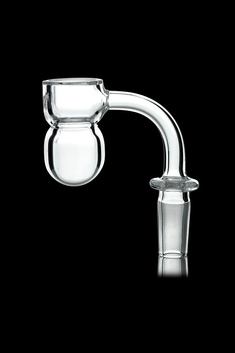 The 3mm X 25mm AFM Splash Guard Round Bottom Quartz Banger is a cutting-edge dabbing accessory designed to enhance your concentrate experience with its innovative features. Here's a detailed look at what this banger offers: 3mm Thick: This banger is crafted with a durable 3mm thickness, providing excellent heat retention for efficient vaporization of your concentrates. The thick walls ensure that your dabs are evenly heated, delivering consistent and flavorful hits. Splash Guard: The banger is equipped with a splash guard, which is a raised barrier inside the bucket. The splash guard prevents concentrates from climbing up the walls of the bucket during the dabbing process, reducing wastage and keeping your banger cleaner. Round Bottom: The round bottom design allows for even heat distribution, ensuring that your concentrates are evenly vaporized. Additionally, the round bottom allows you to easily spin marbles or pearls inside the bucket, optimizing the vaporization of your concentrates and enhancing your dabbing experience. Flat Top Beveled Edge: The flat top beveled edge adds a touch of sophistication to the banger's appearance. It also facilitates the movement of marbles, ensuring that your concentrates are efficiently vaporized, leaving no waste. Made from 100% High-Quality Quartz: This banger is constructed from premium-quality quartz, ensuring superior heat resistance and preserving the true flavors of your concentrates without any unwanted impurities. 25mm Bucket: The spacious 25mm bucket provides ample room to load a substantial amount of concentrates, making it perfect for those who enjoy larger dabs or sharing with friends. Domeless Nail: The banger comes with a domeless nail, eliminating the need for a separate glass dome. The domeless design simplifies the dabbing process, providing a direct and convenient connection for your torch and concentrates. Polished Joint: The joint of the banger is meticulously polished, ensuring a secure and airtight connec...