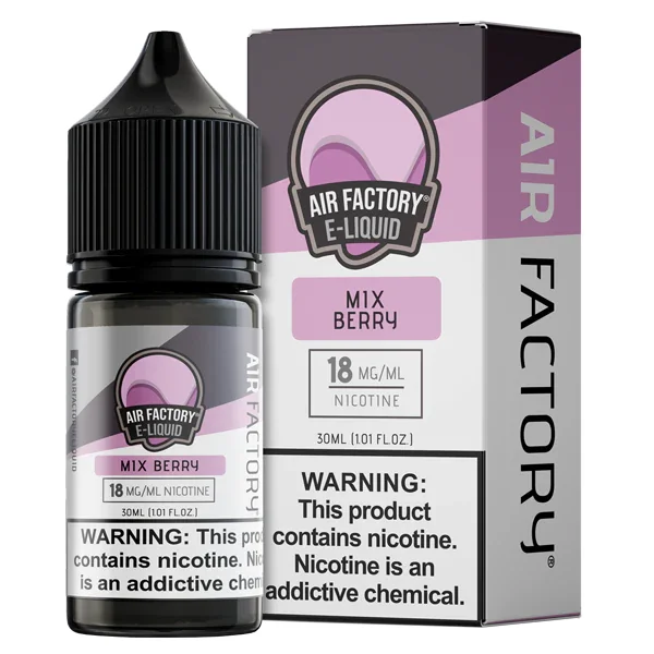 NICOTINE SALTS | Individual Bottle Flavor : Mix Berry by Air Factory is a sweet blend of soft summer berries and candied fruit flavors. E-liquid contents : 30mL Nicotine Strengths : 18mg and 36mg Blended for use with Pod Systems Browse more E-Liquid Brands Here