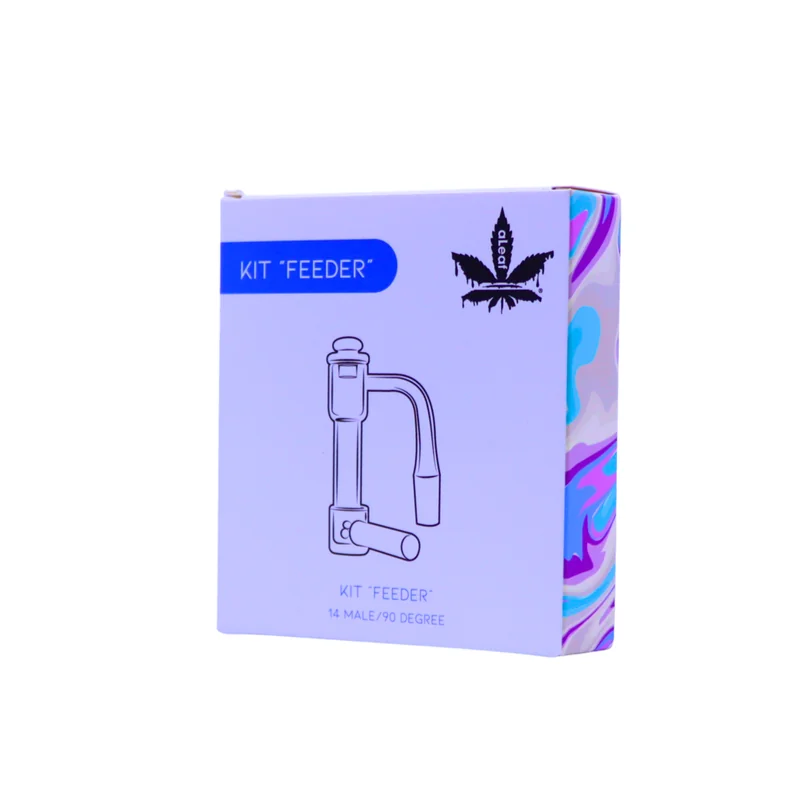 ALEAF FEEDER KIT 90 DEGREE 14MM MALE BANGER (ALD1055) Upgrade your concentrate sessions with the Aleaf Feeder Kit 90 Degree 14mm Male Banger (ALD1055) . Designed for smooth, consistent performance, this premium quartz banger features a 90° angled joint with a 14mm male fitting , making it compatible with most rigs and waterpipes. The Feeder Kit design is engineered to optimize airflow and heat retention, ensuring concentrates vaporize evenly for flavorful, potent hits . Crafted from durable, hea