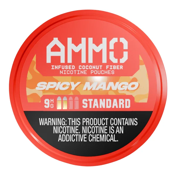 5-PACK OF POUCH CANS Flavor : Wholesale Spicy Mango Ammo nicotine pouches at Mi-Pod offer a smoother experience and higher nicotine strengths than rival products. Nicotine Level : 9mg (Standard), 12mg (Strong) or 15mg (Magnum) per pouch Can QTY: 15 nicotine pouches per can Retail Case Size : Sold in 5-Pack of Cans Patented Coconut-Fiber Pouch Technology Extended, long-lasting nicotine release Assembled in the USA Vapor Free Nicotine Alternative Browse all Wholesale Nicotine Pouches