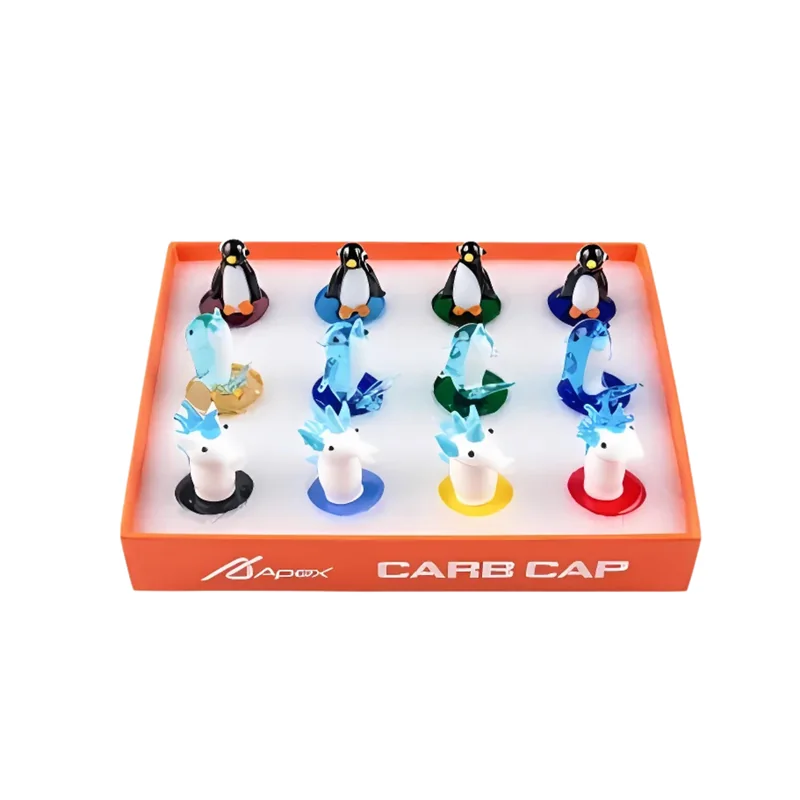 APEX PREMIUM GLASS CARB CAP ASSORTED DESIGNS DISPLAY OF 12 (CCP505) Enhance your dabbing sessions with the APEX Premium Glass Carb Caps , designed for precision and efficiency. These carb caps come in assorted unique designs and are made from high-quality, heat-resistant glass , ensuring durability and reliable performance. Engineered to provide optimal airflow control and heat retention, they maximize vaporization for smooth, flavorful hits. Packaged in a display of 12 , these carb caps are per