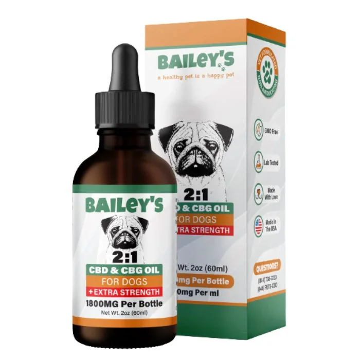 Has your dog been using CBD for a while, and have you found that they require more than the average pup? Or perhaps your dog is getting older, or has a debilitating or terminally ill condition? Well, Bailey's +Extra Strength tincture provides 900MG of plant-based cannabinoids in a 2:1 CBD:CBG Full Spectrum Hemp Oil profile, which may be the ideal product for your pup in need! By retaining a whole-plant profile, our 2:1 CBD to CBG formulation contains a wide array of hemp-based cannabinoids, terpenes, and flavonoids allowing for the "Entourage Effect" to occur, in which all of the naturally occurring whole-plant properties work in synergy with each other to provide optimal therapeutic value. CBD & CBG are both non-intoxicating, and work together as naturally occurring hemp-based adaptogens, promoting "homeostasis" or balance, at a systemic level. This provides the perfect environment for our pets to live healthy, age gracefully & feel more complete. It has been shown that CBG may be potentially beneficial for pets with neurological diseases, skin disorders or infections, chronic pain, bone repair, high blood pressure, inflammation, and so much more. 30ml size with a strength of 900mg. 60ml size with a strength of 1800mg.