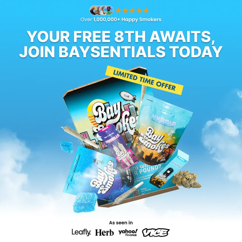 $118 in value! What's Inside Baysentials? Try an assortment of our hottest products every month, discreetly delivered to your door. Whether you’re a seasoned smoker or canna curious, we have something for everyone. Elevate your ritual, spark discovery, and make sure you always have a fresh stash! 1x THCa Live Resin Disposable Vape 1g ($36 Value) 6x THCa Preroll (3 strains, 2 prerolls each) ($45 value) 5 Count 10mg THC Gummy ($10 value) 3.5g Exotic Smalls ($27 value)