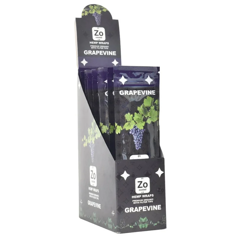 MSRP $0.99 PER PACK SLOWEST BURNING HEMP WRAPS ON THE MARKET! With The Grapevine Zooted Hemp Wraps Display Box Consisting Of 25 Packs Of Grapevine Hemp Wrap Packs Containing 2 Wraps Per Pack You Can Cater To Your Customers Who Are Fond Of Juicy Flavors! The Grapevine Hemp Wraps Are An Innovative Foray Into The Exotic Smell, Taste, And Fragrance Of A Wide Variety Of Exquisite Grapes. Let Your Customers Go Fruity With These Wraps And Enjoy Their Sesh Like A Wild Night In The Vineyard! Product Detail: 2 Wraps Per Pack 25 Pack Per Display Tobacco-free Non-GMO, Organic wraps Filter tips included