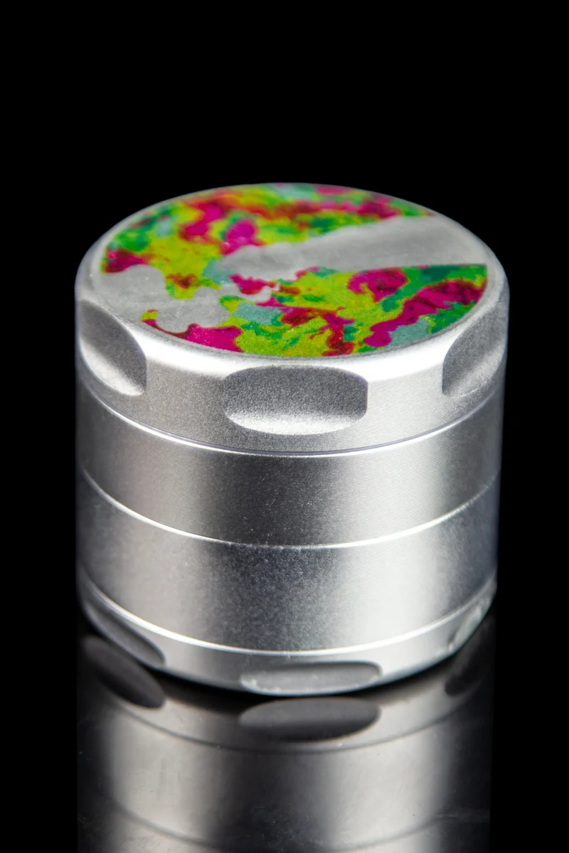Fans of Moondog, we've got the perfect grinder for you! This 4-part piece of excellence is made from CNC aluminum and has everything you could ever ask from a grinder. It sports a magnetic lid for that awesome KLAK sound, razor-sharp shredding teeth, a sifting screen, and a pollen chamber to safely catch and store your kief. Decorated with the iconic Moondog decal on top and the Beach Bum logo on the bottom. Classy!