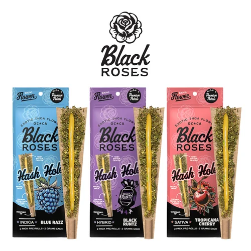 The Black Roses - THCa Hash Hole Pre-Roll 2g 2ct - Display of 10 offers premium pre-rolled convenience. Comes in a quantity of display of 10. Suggested retail price $12.00. A consistent seller in any smoke shop's pre-roll section. Available at wholesale pricing from Port City Wholesale.