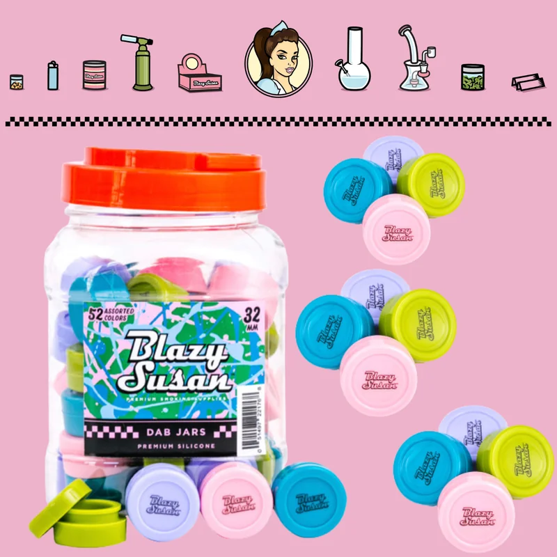 The BLAZY SUSAN 32MM SILICONE DAB JAR DISPLAY OF 52 by Blazy Susan is a versatile cone built for everyday use. Made with silicone for long-lasting durability, this cone is designed to enhance your smoking experience. Whether you are upgrading your collection or replacing a worn piece, this cone delivers reliable performance at a great value. Available at wholesale pricing from Port City Wholesale.