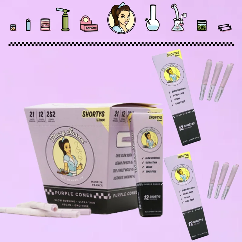Shop/Products/BLAZY SUSAN PURPLE EDITION 53MM SHORTYS CONES DISPLAY OF 21 (12PK)