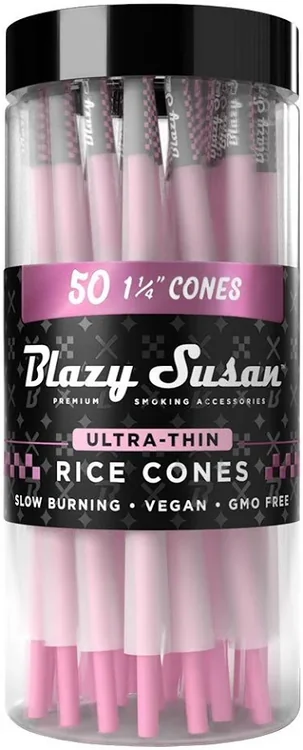 The Blazy Susan - Ultra Thin Rice Paper Cones - 1-1/4 - Jar of 50 offers premium pre-rolled convenience. Comes in a quantity of jar of 50. Suggested retail price $19.99. A consistent seller in any smoke shop's pre-roll section. Available at wholesale pricing from Port City Wholesale.