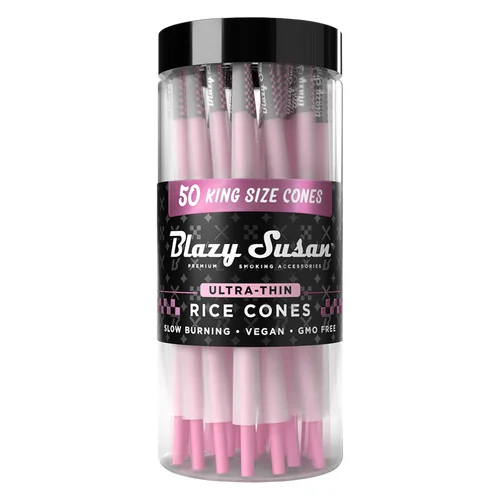 The Blazy Susan - Ultra Thin Rice Paper Cones - King Size - Jar of 50 offers premium pre-rolled convenience. Comes in a quantity of jar of 50. Suggested retail price $19.99. A consistent seller in any smoke shop's pre-roll section. Available at wholesale pricing from Port City Wholesale.