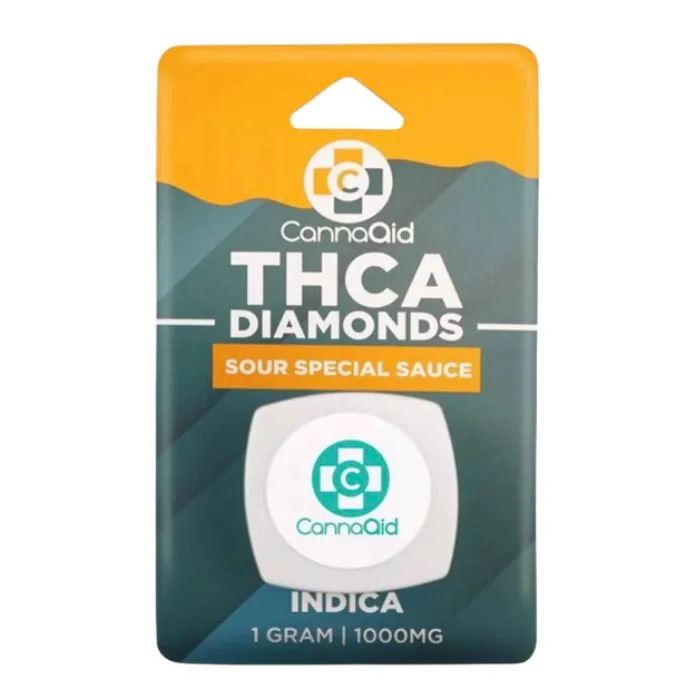 CannaAid THCA Diamonds Dabs deliver a powerful dabbing experience with preserved terpenes and cannabinoids for maximum potency. Each batch is farm bill compliant, containing less than 0.3% Delta-9 THC, making it safe for legal consumption. These diamonds are versatile and can be used with concentrates or flower, enhancing your overall experience. Perfect for users seeking a premium and effective product in their sessions. CannaAid THCA Diamonds Dabs Features: Potent THCA Diamonds: Delivers a strong dabbing experience, perfect for users seeking enhanced effects. Preserved Terpenes & Cannabinoids: Maintains valuable compounds during production for maximum potency. Versatile Use: Best enjoyed with sauce, concentrates, or incorporated into flower for added strength. Farm Bill Compliant: Contains less than 0.3% Delta-9 THC on a dry-weight basis, adhering to the 2018 Farm Bill. Smokable Format: Designed for dabbing, offering a powerful and smokable consumption method. CannaAid THCA Diamonds Flavors/Strain: Natural: A pure, unflavored option showcasing the raw essence of THC-A diamonds without added terpenes, perfect for those seeking a clean and potent experience. Grand Daddy Purple - Indica: A classic indica strain with rich, grape-like flavors and a soothing, body-heavy effect that helps ease tension and promote relaxation. Sour Diesel - Sativa: A well-known sativa strain with a pungent, diesel-like aroma and an energizing effect, great for boosting creativity and focus. Super Special Sauce - Indica: An indica strain with a unique combination of earthy, sweet flavors, offering deep relaxation and a calming body high. Super Silver Haze - Sativa: A popular sativa strain with spicy, citrusy notes, delivering an uplifting and energizing high that stimulates the mind. Blue Dream - Hybrid: A balanced hybrid combining the sweet berry flavors of Blueberry with the calming effects of Haze, offering a gentle body relaxation with a clear-headed high.