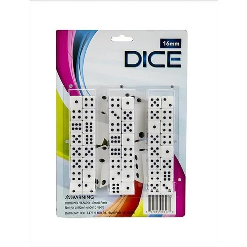 Get the Large White Playing Dice 16mm - (48 Count per pack) from Cap. Quality materials and thoughtful design deliver the performance you expect. A consistent seller and reliable everyday product.