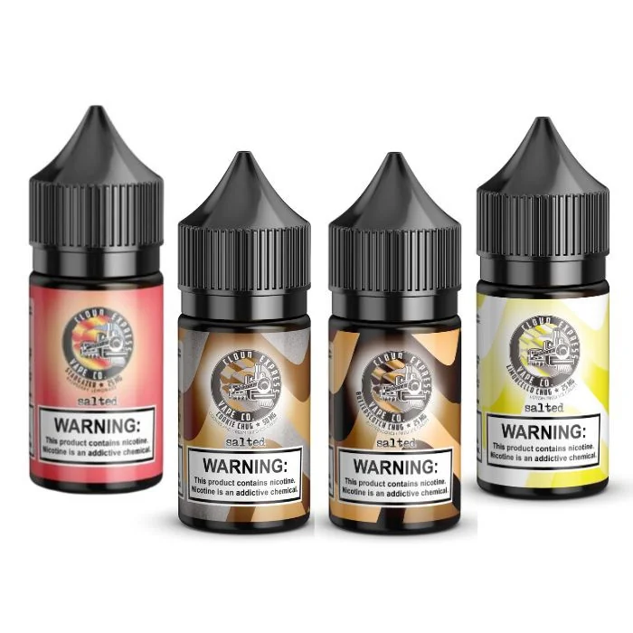 Minimum Purchase Quantity: 3 Bottles. Discover a premium vaping experience with Cloud Express Nicotine Salts, expertly crafted to deliver smooth, satisfying hits and rich flavors. Perfectly balanced for both beginners and seasoned vapers, these nicotine salts offer a consistently enjoyable experience with every puff. Available in various strengths to suit your preference, Cloud Express Nicotine Salts are your go-to choice for a superior and flavorful vaping journey. Flavor List: Dulce de Chug: A smooth blend that captures the rich and creamy essence of caramel, delivering a satisfyingly sweet and indulgent experience with every puff. Stargazer: This Raspberry lemonade is perfectly refreshing and flavorful. Hand-squeezed lemons topped off with the fresh, fruitful taste of sugar-sprinkled raspberries. Absolutely perfect for spring and summer. Strawberry Chug: A vibrant burst of ripe, juicy strawberries with a sugary twist, delivering a delightful and refreshing flavor that's perfect for any strawberry lover. Cookie Chug: Cookie Chug is a fried vanilla ice cream topped off with you're favorite creamy sandwich cookie. Limoncello Chug: Buttery vanilla pound cake soaked in milk and topped with light, fluffy marshmallows. Butterscotch Chug: A rich, velvety butterscotch envelops creamy fried vanilla ice cream for an indulgent treat.