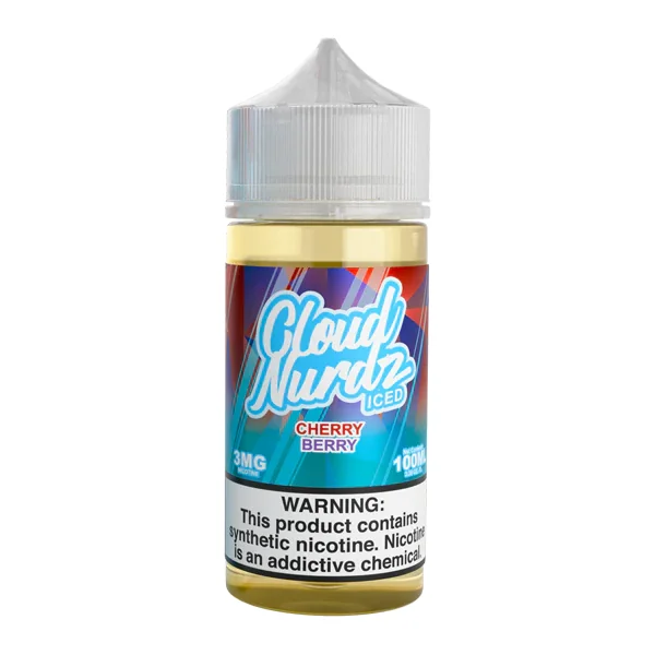 Freebase E-Liquid by Cloud Nurdz Flavor: The Iced Cherry Berry Cloud Nurdz eJuice is a high VG vape juice adds a blast of ice into a tart cherry and berry vape. E-Liquid Size : 100ml Nicotine Level : 3mg · 6mg VG/PG Ratio: 70/30 Browse more Wholesale Vape Juices