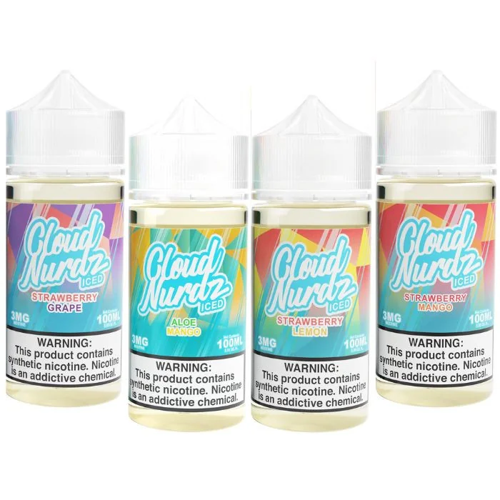 Crafted for menthol and fruit lovers, Cloud Nurdz Iced E Liquid blends refreshing menthol with juicy fruits like Strawberry Lemon and Kiwi Melon. Available in large 100ml bottles with nicotine strengths of 0mg, 3mg, and 6mg, this e-liquid offers a cooling, satisfying vape for a wide range of preferences. Ideal for all-day enjoyment. Cloud Nurdz Iced E Liquid Features: Menthol-Fruit Fusion: A refreshing blend of menthol with mouth-watering fruit flavors like Strawberry Lemon, Kiwi Melon, and Peach Blue Raspberry. Generous Size: Packaged in large 100ml bottles, offering great value and lasting enjoyment. Nicotine Strength Options: Available in 0mg, 3mg, and 6mg, catering to different nicotine preferences. Smooth & Cooling Vape: Crafted for a satisfying vaping experience with a perfect balance of menthol and fruity sweetness. Brand Legacy: Established in 2016, Cloud Nurdz has become synonymous with innovative, sweet, and bold e-liquids. Global Appeal: Known worldwide for its high-quality flavors and commitment to excellence, including PMTA submissions. Cloud Nurdz Iced E Liquid Flavors: Aloe Mango Iced: Refreshing aloe with a tropical mango twist. Banana Dragon Berry Iced: Creamy banana blended with exotic dragon fruit and mixed berries. Blue Raspberry Lemon Iced: Tart blue raspberry combined with zesty lemon. Cherry Apple Iced: Juicy cherry and crisp apple fusion. Grape Apple Iced: Sweet grape mixed with tart apple. Grape Strawberry Iced: A delightful mix of grape and ripe strawberries. Guava Passion Fruit Iced: Exotic guava paired with tropical passion fruit. Kiwi Melon Iced: Juicy kiwi mixed with refreshing melon. Peach Blue Raspberry Iced: Sweet peach with a hint of blue raspberry. Peach Blue Razz Iced: Another take on peach with a tangy blue raspberry finish. Peach Dragonfruit Iced: Sweet peach combined with vibrant dragonfruit. Pomegranate Berry Iced: Tart pomegranate with a mix of sweet berries. Sour Watermelon Strawberry Iced: Tangy watermelo