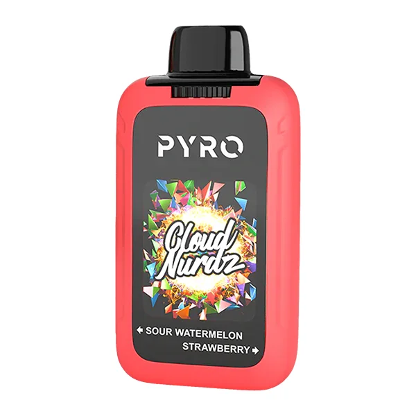 Cloud Nurdz X Pyro Disposable 5-Pack Flavor: The wholesale Cloud Nurdz x Pyro features dual flavor switch technology. Turn the dial to switch the flavor between dual tanks. A pair of dual mesh coils make this essentially two disposable vapes in one. Customers can enjoy sour watermelon or strawberry flavors. Capacity: 24ml (12ml of each flavor) Nicotine Strength: 50mg Puff Count: ~ 30000 Puffs (15,000 of each flavor) Battery Size: 900mAh Coil: Quad 1.0ohm Mesh Coil Adjustable Airflow E-Liquid and Battery Life Display Screen Dimensions: 100 x 51 x 26.4mm Browse more disposable vape flavors