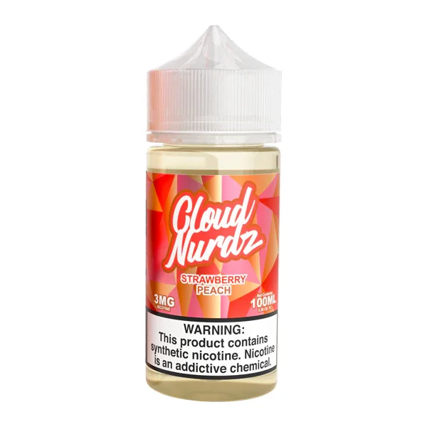Freebase E-Liquid by Cloud Nurdz Flavor: The Strawberry Peach Cloud Nurdz eJuice features a pair of popular fruit flavors in a perfectly blended high-VG vape juice. E-Liquid Size : 100ml Nicotine Level : 3mg · 6mg VG/PG Ratio: 70/30 Browse more Wholesale Vape Juices