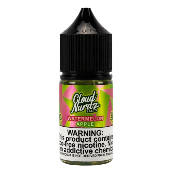 Nicotine Salts by Cloud Nurdz Flavor: The Watermelon Apple Cloud Nurdz Salt flavor uses a candied fruit flavor duo to make an outstanding all around nicotine salt eJuice. The mix of watermelon with sour apple packs a punch of flavor in every puff. E-Liquid Size : 30ml Nicotine Level : 25mg · 50mg Browse more E-Liquid Brands here