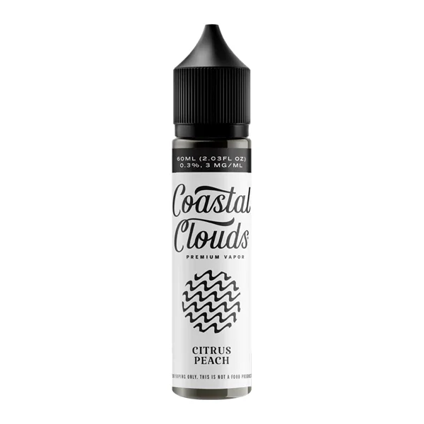 COASTAL CLOUDS EJUICE Flavor: The Citrus Peach Coastal Clouds E-Juice adds tart citrus notes to a juicy, sweet peach flavor for a perfectly balanced vape. E-Liquid Size : 60ml Nicotine Levels : 3mg, 6mg VG/PG Ratio: 70/30 Browse more E-Liquid Brands here