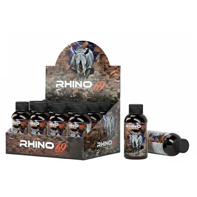 MSRP $9.99 PER SHOT Disclaimer: These statements have not been evaluated by the U.S. Food and Drug Administration. This product is sold as a botanical specimen only and is not intended to diagnose, treat, cure, or prevent any disease or for human consumption. You must be 21 years or older (18+ where state law allows) to purchase. May be habit-forming; use responsibly and do not exceed recommended dosages. Not for long-term or consecutive daily use. By using this product, you accept full responsibility for any adverse events or health complications. Individual results may vary. Rhino 69 Male Enhancement Liquid Shot is crafted to elevate your intimate experience to the next level. This fast-acting liquid formula is designed to support libido and sexual desire, helping you feel more energized and ready for passion when it matters most. Take control of your moments and experience the boost you’ve been looking for. Product Details: Serving Size: 1 liquid shot Directions: Take 1 shot approximately 1 hour before sexual activity Made in the USA 12 Count Display Caution: Consult a physician before use, especially if you have heart conditions or other medical concerns. Discontinue use immediately if any undesirable effects occur. Keep out of reach of children. Store in a cool, dry place. Must be 21 years or older to purchase. Do not exceed recommended dosage. Note: Effects may vary by individual.