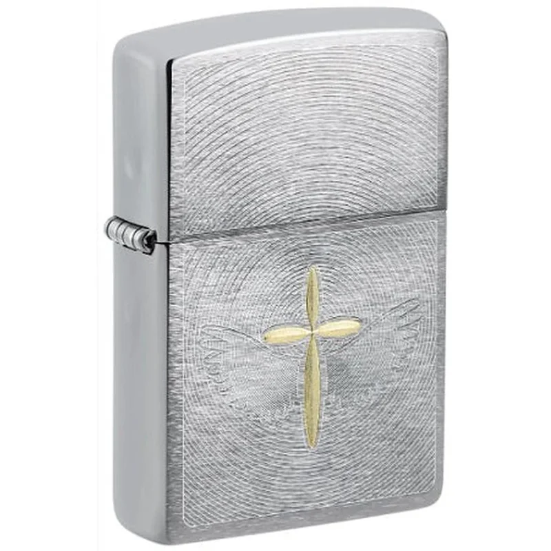 MSRP $26.95 A radiant brass cross is framed by detailed angel wings on this classic Cross Brushed Chrome lighter, featuring a subtle two-tone aura design on a timeless brushed chrome finish. Comes packaged in a gift box. For optimal performance, fill with Zippo lighter fuel. Genuine Zippo windproof lighter with distinctive Zippo “click” All metal construction; windproof design works virtually anywhere Refillable for a lifetime of use; for optimum performance, we recommend genuine Zippo fuel, flints and wicks 1 Count Lighter Specs: Height: 2.25″ Width: 0.5″ Depth: 1.5″ Weight: 0.18 lbs.