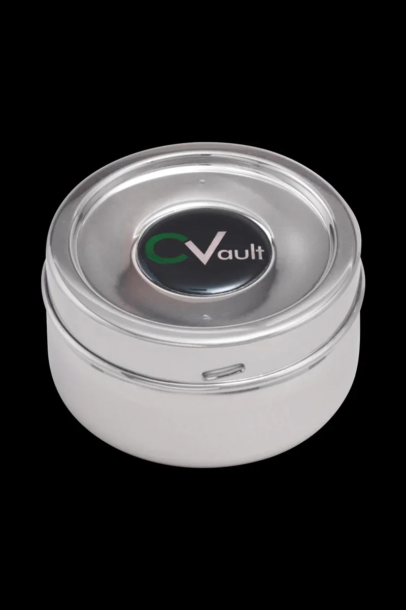 More than just a storage container, the CVault "Twist" is a humidor designed to keep your product fresh and flavorful. It's constructed of quality food-grade stainless steel and is both airtight and light-proof. Thi lightweight and durable container features silicone gaskets to keep the contents tightly sealed and protected. The lids, which are interchangeable between sizes, are designed to work specifically with the 8g Boveda 62% Humidity Control Pack. Dimensions and Capacities X Small - 3.25” x 1.0”, 0.09 Liters, Holds 7 grams Small - 3.25” x 1.75”, 0.175 Liters, Holds 14 grams The Twist comes with a sample pack of the Boveda 62% Humidity Control Pack, which is a safe and effective way to keep your products at maximum freshness. It can even be used to help restore dried-out herbs. Note: Do not mix different Boveda RH levels within the same container, and do not use Boveda in the same container with other humidification products. Doing so will reduce the efficiency of the product.