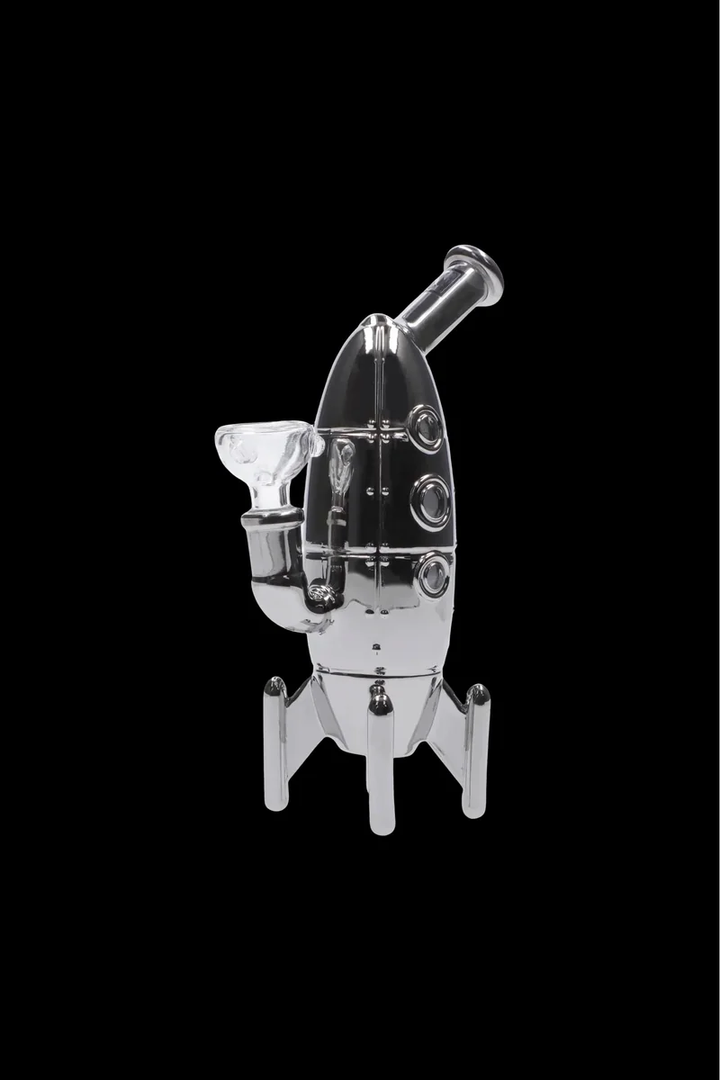 Blast off! The Daily High Club Silver Rocket Bong has launched out of the monthly smoking box and into the stratosphere of DHC products for you to check out! This bong is shiny and sleek, guaranteed to bring some shimmer to your next smoking session. If getting high is the destination, this rocket will surely get you there. Features: Original Daily High Club Design Silver-plated borosilicate glass Rocket Ship themed bong Includes 14.5mm banger and dab nail