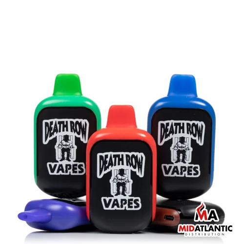 The Death Row Vapes 7000 Puffs 50mg Rechargeable 12mL Disposables *Display of 5* delivers smooth, flavorful vapor in a compact, pocket-friendly design. Pre-filled and pre-charged — no setup, no maintenance. Just draw and enjoy.