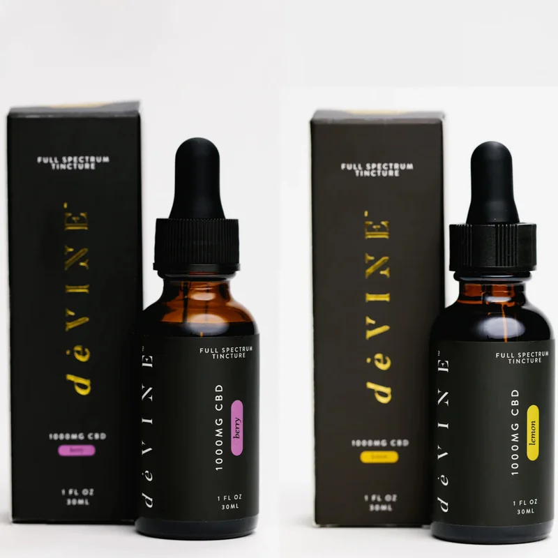 Discover the natural power of DeVINE — a premium full-spectrum CBD tincture crafted with just three organic ingredients. This clean, high-potency formula is designed to support a balanced mind and body, helping to ease anxiety, promote deep relaxation, and improve sleep quality. Each 30oz bottle contains 1000mg of full-spectrum CBD, delivering approximately 33mg per dropper for consistent daily wellness. Ideal for customers seeking a natural, plant-based solution without additives or unnecessary fillers. Why Choose DeVINE? Full-spectrum formula for maximum cannabinoid synergy Only 3 clean, organic ingredients Supports calm, focus, and restful sleep THC-compliant and third-party tested Available Flavors: Lemon: Crisp, refreshing citrus with a naturally soothing finish. Berry: Juicy mixed berries with a smooth, mellow taste.