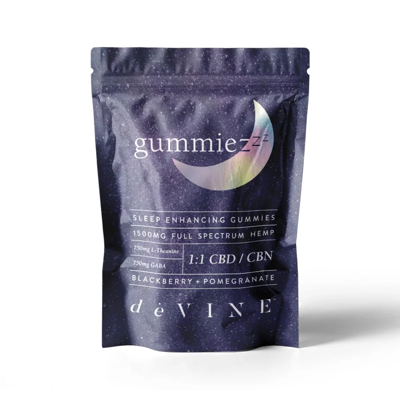 deVine GummieZzz – Sleep Support Gummies with CBD, CBN, GABA & L-TheanineTired of restless nights? deVine GummieZzz delivers a powerful sleep-enhancing blend designed to help you relax, fall asleep faster, and wake up refreshed. Infused with premium CBD, CBN, GABA, and L-Theanine, these gummies offer a natural way to unwind without grogginess. Ideal for those seeking a peaceful night’s rest, whether you're a light sleeper or just need to reset your sleep cycle. Perfect for retail or wholesale, deVine GummieZzz is your go-to functional edible for quality sleep support. Flavor: Blackberry + Pomegranate: Rich and tangy with a subtle sweetness perfect for winding down at night. Shut off the noise, cozy up, and enjoy a bedtime treat that’s as effective as it is delicious.