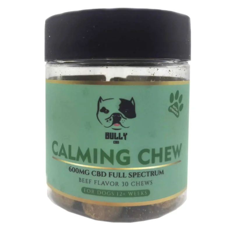Bully CBD dog treats deliver a potent 20mg of full-spectrum CBD combined with calming botanicals like L-theanine, Ashwagandha, and Passion Flower. These beef-flavored chews provide powerful natural support for your dog’s relaxation and overall well-being.