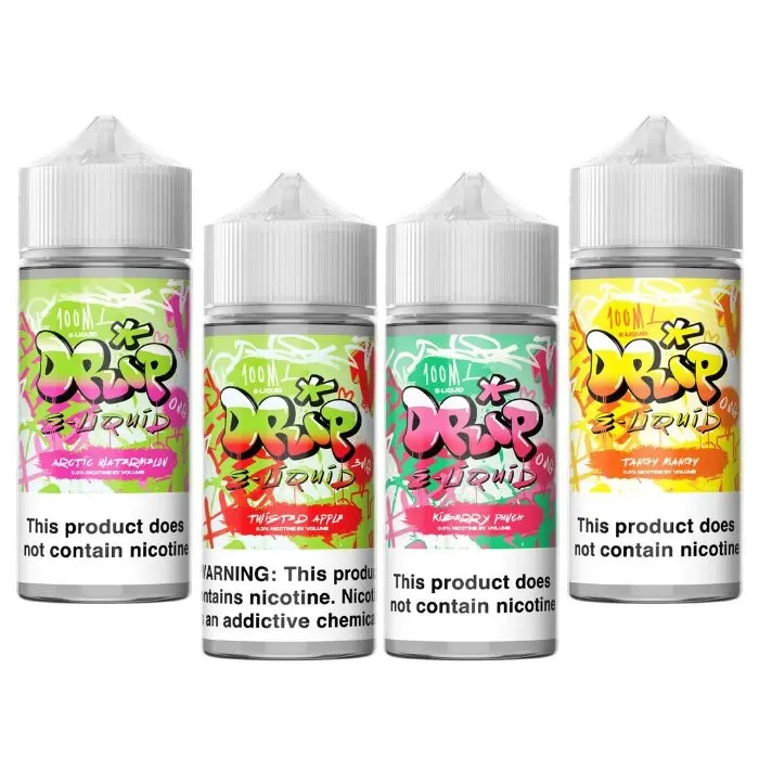 Experience bold, flavorful clouds with DRIP E-Liquids. Available in 100ml bottles with 0mg, 3mg, and 6mg nicotine strengths, these premium blends deliver smooth, satisfying hits. Perfect for vape stores and wholesale buyers. Flavors: Arctic Watermelon – A crisp blend of juicy watermelon and icy menthol. Kiberry Punch – A tropical fusion of sweet kiwi and ripe strawberries. Tangy Mangy – A vibrant mix of tangy mango with a citrusy twist. Twisted Apple – A bold blend of crisp apples with a sweet and tart finish. Elevate your vape game with DRIP E-Liquids—crafted for maximum flavor and smooth performance.