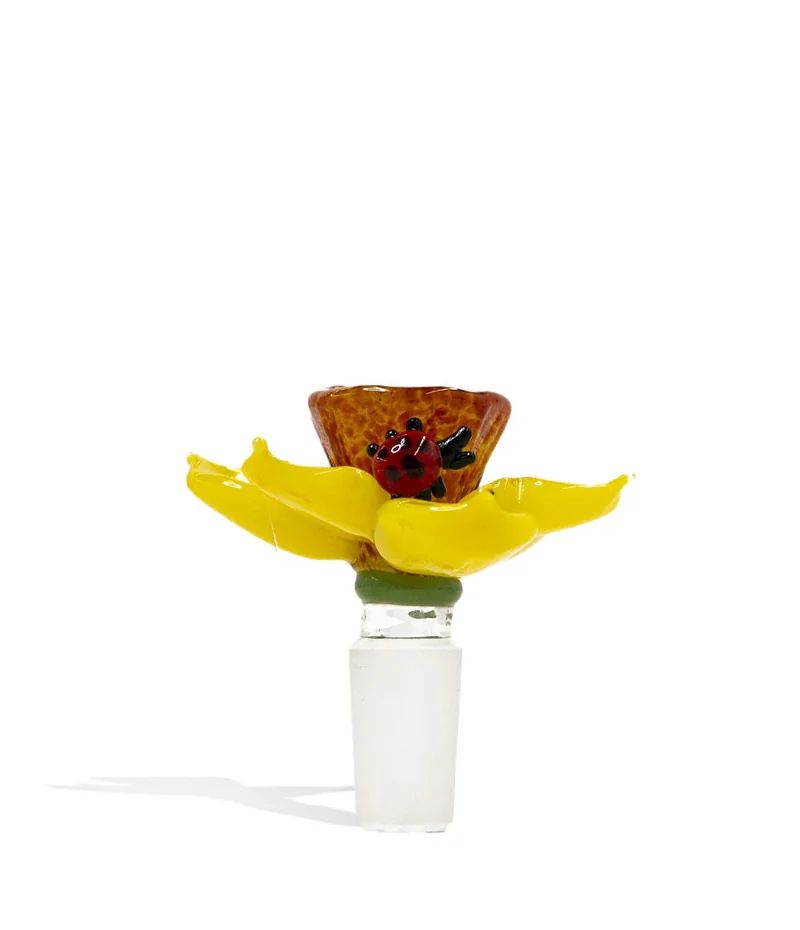 Sunny Smiles Introducing the Empire Glassworks Daffodil 14mm Bowl—a stunning glass creation featuring a daffodil flower adorned with a curious ladybug on one of its petals. This piece is meticulously handcrafted from strong borosilicate glass, showcasing a harmonious blend of custom colors in red, yellow, and green. Not only is this bowl visually captivating, but its blooming petals also serve as a convenient handle for easy control. Furthermore, this bowl is designed with a 14mm male joint, ensuring compatibility with any standard 14mm female joint waterpipe. Experience the beauty and functionality of this remarkable bowl in your sessions. Empire Glassworks is well-known for their high-quality glassware and smoking accessories. They are famous for their amazing artwork and careful attention to detail. The handmade pieces they create are stunning, with intricate designs and beautiful colors, showcasing the incredible talent and creativity of their skilled artists. What’s Included: (1) Empire Glassworks Daffodil 14mm Bowl
