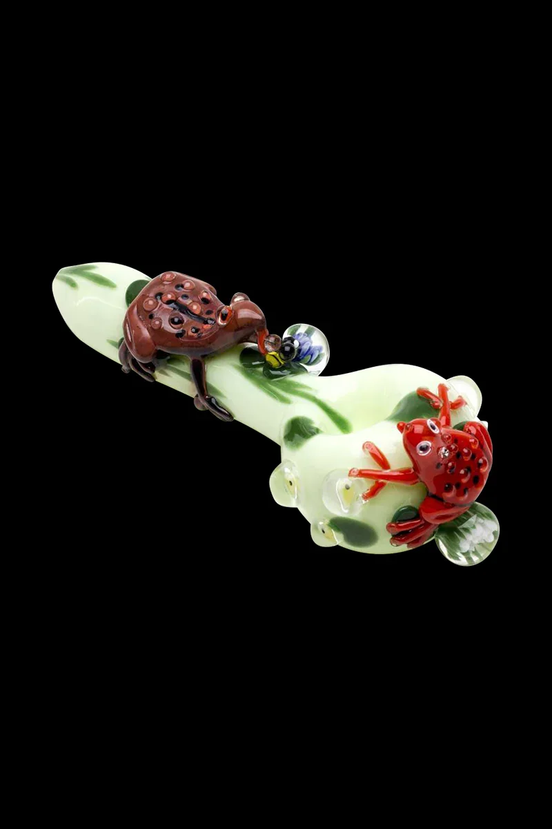 Love smoking from spoon pipes? Ready to invest in a premium heady pipe that'll give you years and years of pleasure? Then you just can't go wrong with one of the intricate creations by Empire Glassworks. This amazing pipe is perfect for nature lovers, featuring an entire pond ecosystem, with tiny sculptures of lily pads, flowers, and frogs. Made with impressive hand precision, this pipe shows amazing details that'll impress you time and time again. This American-made pipe is crafted from thick borosilicate glass and has a no-roll design with accent marbles. It delivers a classic spoon experience, with a roomy bowl for large loading capacity and a carb hole for airflow control. A fantastic choice for everyone who loves animals and nature, each of these pipes is slightly different from one other as they're all crafted by hand.