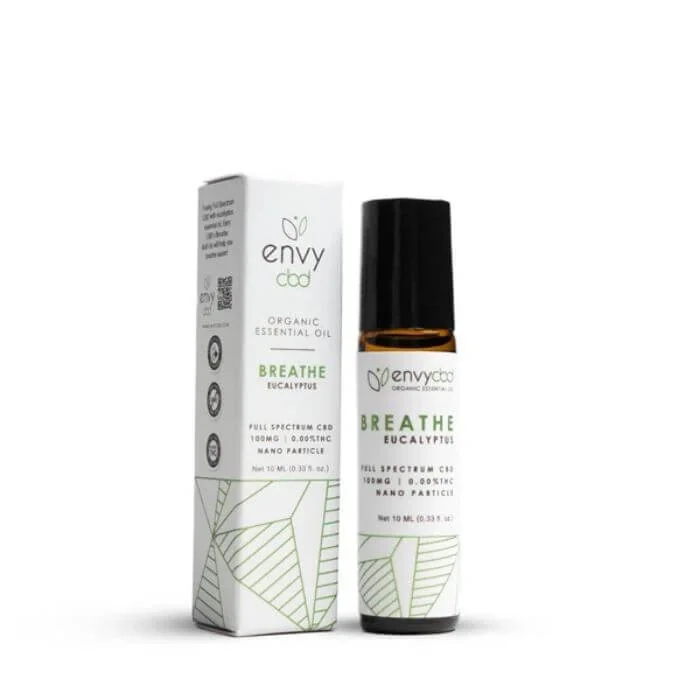 Breathe easy with Envy CBD's Essential Oil Roller! Formulated with eucalyptus essential oil and Full Spectrum CBD, expect an increase in relaxation and calmness as those airways open up, allowing you to take control of your day. 100MG 10ml Ingredients: Fractionated Coconut Oil, Eucalyptus Essential Oil, Full Spectrum CBD (0.00% THC), Phytocannabinoid-Rich (PCR) Hemp Oil How to Use: Apply to pressure points such as temples, neck, shoulders, or the back of wrists to encourage improved wellness. Warnings: - Keep out of reach of children. Consult your healthcare provider before taking if you are pregnant or nursing or have any other medical conditions. Do not ingest. For External use only. Keep away from eyes. Discontinue use if irritation develops. Store in a cool dry place away from direct sunlight. This product contains less than 0.00% THC. - These statements have not been evaluated by the Food and Drug Administration. This product is not intended to diagnose, treat, cure, or prevent any disease. Keep out of reach of children. Consult your healthcare provider before taking if you are pregnant or nursing or have any other medical conditions. Made in USA under the Colorado Dept. of Agriculture Program.