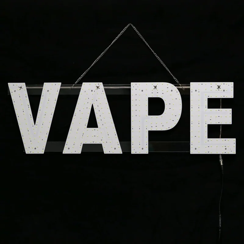 ILLUMINATED SPARKLING LED VAPE DESIGN SIGNS (12 X 32") Boost your vape shop's visibility with the Illuminated Sparkling LED Vape Design Sign (12" x 32") . Featuring a sleek and modern vape-themed design illuminated by vibrant, energy-efficient LEDs, this sign is perfect for attracting attention and enhancing your storefront's appeal. The 12" x 32" size is ideal for window or wall mounting, offering a professional and inviting look that stands out day and night. Features: Bright LED Illumin