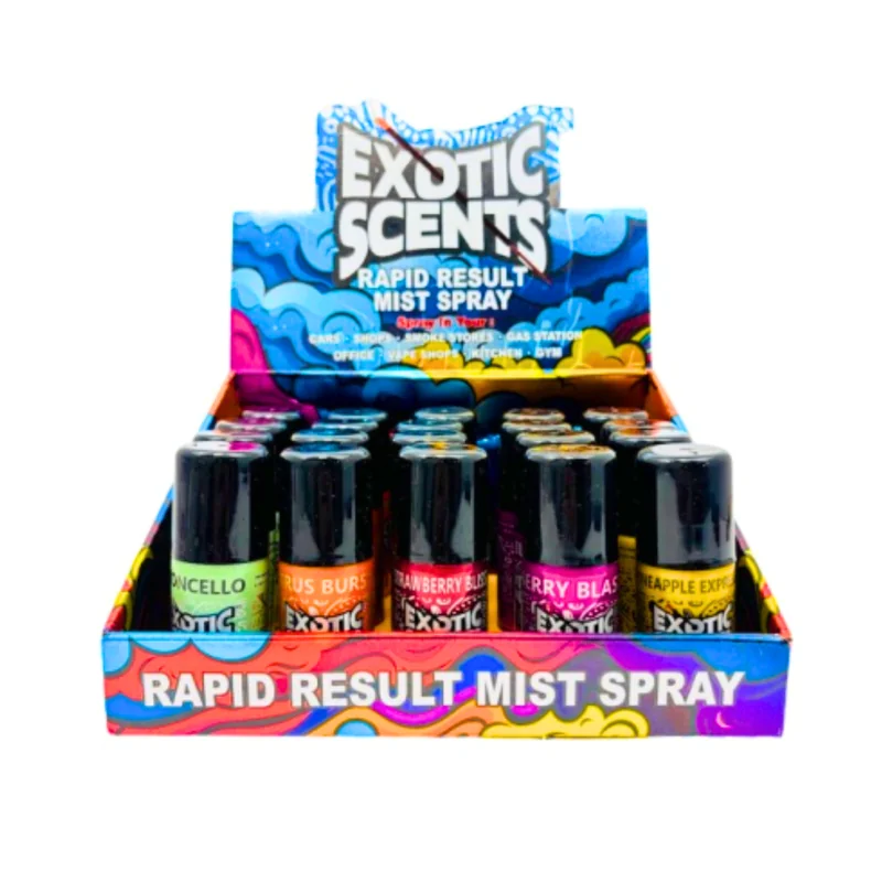 EXOCTIC SCENTS RAPID RESULT MIST SPRAY 1OZ DISPLAY OF 20 Freshen up instantly with the Exotic Scents Rapid Result Mist Spray 1oz – Display of 20 . Specially formulated for quick odor elimination , this mist spray provides immediate freshness with just a couple of sprays. Each 1oz bottle is compact, portable, and easy to use—perfect for cars, homes, offices, and on-the-go freshness. The fast-acting formula ensures unwanted odors are neutralized quickly, leaving behind a clean, refreshing scent. W