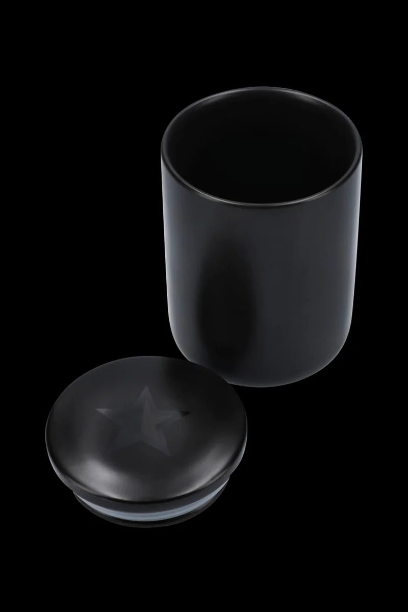 Keep your precious herbs safely stowed away with this nice stash jar from Famous Brandz. The black ceramic exterior looks real nice plus, it blocks harmful UV light to help keep your flower fresh. The Famous Brandz Ceramic Stash Jar features a metal lid for an airtight seal that locks freshness in and harmful moisture out. This storage jar is affordable, durable, and just what you need to ensure you'll get the most flavor and smoking enjoyment every time you have a few tokes. The all-black jar is designed with sleekness in mind and features a minimalist Famous Brandz star on the top of the lid. The jar comes in two sizes: Small 200ml (6.8 ounce) and Medium 800ml (27 ounce). Its secure and compact form makes it well-suited for travel.