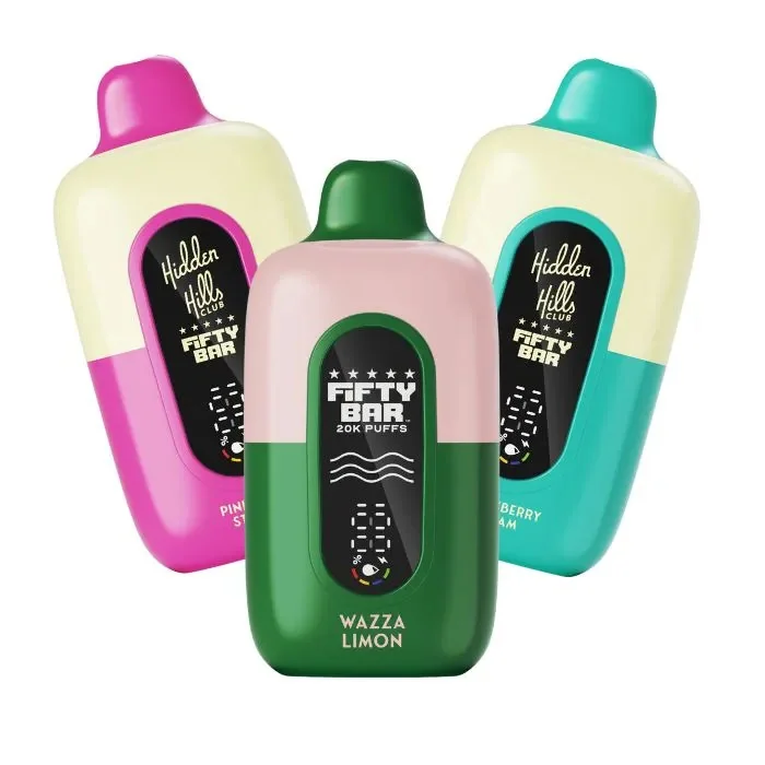 The Hidden Hills x Fifty Bar offers up to 20000 puffs of smooth, flavorful vapor with its 5% nicotine strength. Equipped with adjustable airflow and a boost mode for enhanced flavor, it’s designed for an exceptional vaping experience. The rechargeable 800mAh battery and USB-C charging make it a convenient choice for any vaper. Introducing the Hidden Hills Vape, designed for the ultimate vaping experience. This high-quality disposable vape features an 800mAh rechargeable battery, ensuring longevity and consistent performance. Equipped with a dual parallel mesh coil, it delivers superior flavor and vapor production. With a 5% nicotine strength, it caters to those seeking a robust nicotine hit. The adjustable airflow allows for a customized draw, while the Always-Active Boost Mode ensures maximum vapor with every puff. The convenience of vaping while charging eliminates downtime, making it perfect for on-the-go users. Experience up to 20,000 puffs of premium quality with this advanced disposable vape. Hidden Hills x Fifty Bar Vape Features: Battery: 800mAh Rechargeable. Coil: Dual Parallel Mesh. Nicotine Strength: 5%. Airflow: Adjustable. Boost Mode: Always-Active. Charging: Vape While Charging. Puff Count: Up to 20000. Hidden Hills x Fifty Bar Flavors: Hawaiian Nectar – A tropical blend of juicy, island-inspired flavors. Honeyberry Cream – Sweet honeyberries with a creamy finish. Lava Blast – A fiery and tangy burst of citrus and spice. Pink Sour Straws – Sweet and sour candy flavor for a playful puff. Vanilla Bean Tobacco – A smooth, rich tobacco with a hint of vanilla. Yeti Mint – A chilling mint that’s cool and invigorating. Sour Peach Ringz – Tangy peach with a sour twist for a zesty experience. Pina Lush – A tropical mix of pineapple and lush fruits. Pink Milk – A creamy, sweet strawberry milkshake flavor. Hidden Hills x Fifty Bar Wholesale: With up to 20,000 puffs and an 800mAh rechargeable ba