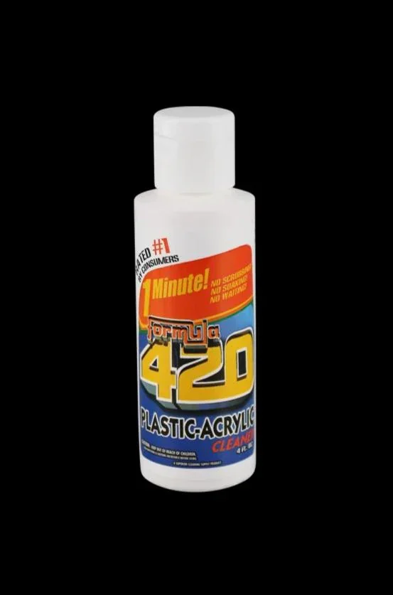 Got many plastic and acrylic pieces? Standard cleaners may damage them, as they are not designed for porous materials. This redesigned Formula 420 cleaning solution offers the same speed and efficiency of their bestselling original but is specifically designed for plastic and acrylic. Made with non-toxic and biodegradable ingredients, it will leave your pieces squeaky clean without any damage. Made with the patented AbrasivAction technology, the Formula 420 Plastic & Acrylic cleaner eliminates dirt and buildup within 1 minute, with no soaking or scrubbing required. This 4oz bottle is perfect for traveling or trying out the product.