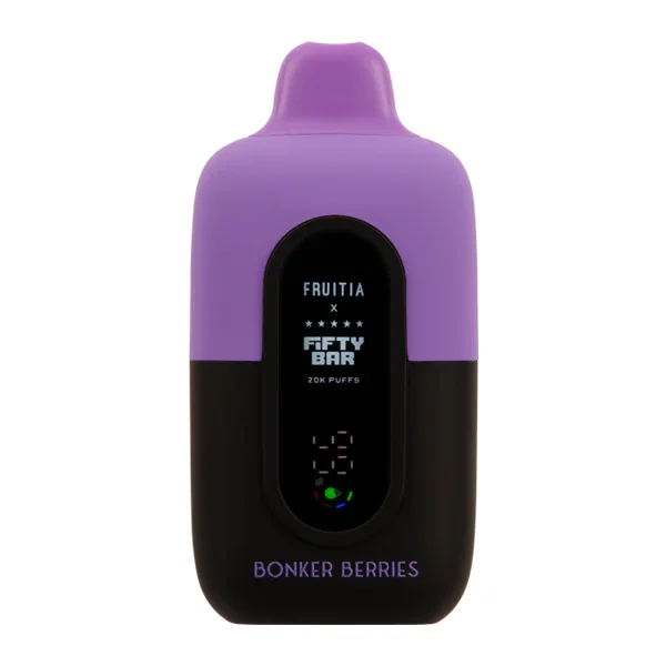 FIFTY BAR 20K VAPE 5-PACK Flavor : The beloved and nostalgic Bonker Berries Fruitia X Fifty Bar took inspiration from an absolutely bonkers hard confection with sweet and tart notes. E-liquid contents : 18ml Nicotine Level : 50mg Puffs per Device : 20000 Battery : 800mAh Grade A Battery (Rechargeable via USB-C) Master Case Qty : 200 Dual Parallel Mesh Coil Built in the USA Shop All Fifty Bar Disposable Vapes Browse more disposable vape flavors