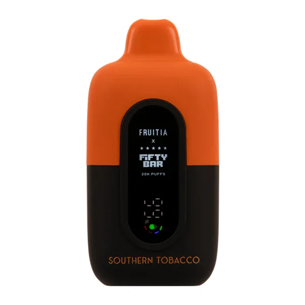 FIFTY BAR 20K VAPE 5-PACK Flavor : The Southern Tobacco Fruitia x Fifty Bar 20K packs a robust and authentic tobacco inspired flavor with earthy, sweet and flue-cured notes. E-liquid contents : 18ml Nicotine Level : 50mg Puffs per Device : 20000 Battery : 800mAh Grade A Battery (Rechargeable via USB-C) Master Case Qty : 200 Dual Parallel Mesh Coil Built in the USA Shop All Fifty Bar Disposable Vapes Browse more disposable vape flavors
