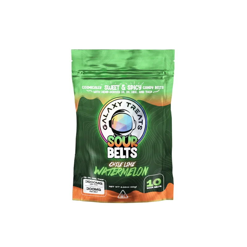 Sweet watermelon, zesty lime, and a spicy chile kick combine in this bold belt of flavor and full-body bliss. With 300mg of Delta 8, Delta 9, HHC, and THCP, Chile Lime Watermelon delivers appetite ignition, deep relaxation, sleep-ready calm, and a euphoric edge—all at a Launch Intensity of 95. It’s spicy, it’s juicy, and it absolutely slaps. Sour Belts cannot be combined with any discount.