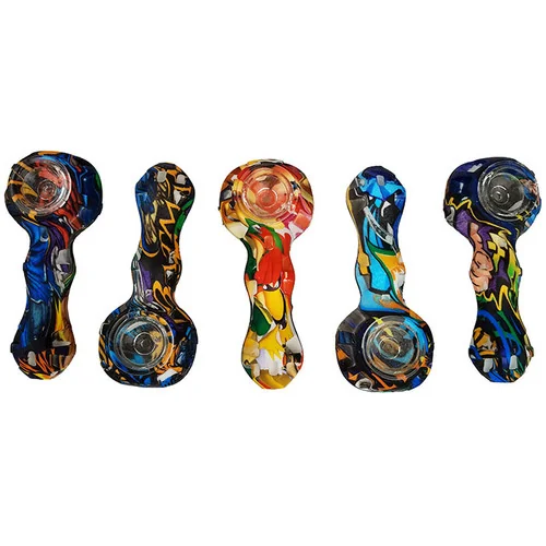 Shop/Products/4.5" Silicone Water Trasfer Print Spoon Hand Pipe with Pick - 5 Pack (MSRP $25.00ea)