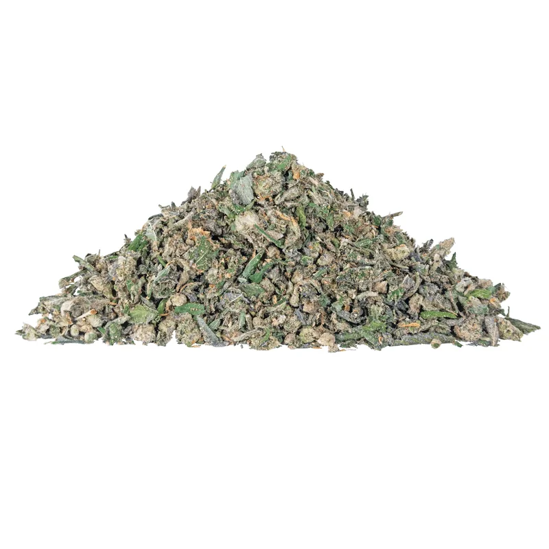 We remove the shake from our exotic and super exotic flower so you get premium nugs only. This is the shake, which comes from exotic ($40/3.5g tier) or super exotic (+$45/3.5g tier) flower. THCa levels of shake are generally the same or even higher than the flower because as the buds rustle around in the packing process, little crumbs and trichomes (which contain the THCa) fall off the bud. Shake contains all the plant material and usually an extra amount of trichomes than regular bud. The downside of shake is that it will dry faster than regular bud because more surface area is exposed to air. But if you are rolling joints or smoking bong bowls, you break down the flower anyway. May as well snag these CRAZY deals to get ozs for $74.99. What Is Cannabis Shake? Shake the crumbs and small buds in the bottom of the bulk bags that break off in transport and handling. Our shake is ideal for smoking because the material is mostly scraped through to remove stems. So you're getting 100% exotic smoking material, that's already in small pieces and chunks ready for a bong bowl, blunt, or joint! Shake vs. Trim? Shake and trim are not the same thing. Trim is mostly the fan leaves of the plant that only contain a few percent of THCa or other cannabinoids and a minimal amount of terpenes. Usually, trim is only used for extraction and is not ideal for smoking. Shake on the other hand is pieces of actual flower buds that get knocked off of the larger buds and fall to the bottom of the bag. Shake usually has an equivalent amount of THCa and terpenes as regular flower, but because terpenes are highly volatile (ie. they evaporate easily), they are more likely to evaporate off of the shake than the full buds because more surface area is exposed to the air.