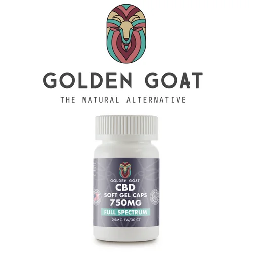 Full Spectrum CBD Soft Gel Caps 30ct 750mg by Golden Goat by Golden Goat Cbd. A wellness-focused CBD product crafted with quality ingredients. Third-party tested for potency and purity to ensure you get exactly what's on the label. Suggested retail: $30.00.