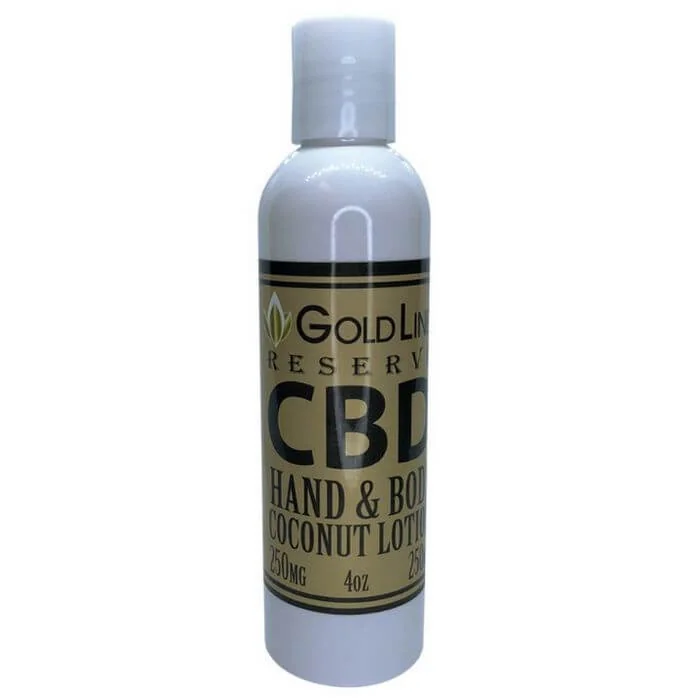 Goldline 250mg CBD 4 oz. Full Spectrum Hand and Body Coconut Lotion Oil is the best way to enjoy the refreshing sensation of our CBD lotion to help smooth your skin potentially give you an extra bit of pain relief and relaxation on tense days. Non-greasy, the lotion absorbs quickly into painful areas plus to soothe skin. 3rd party lab texted and made in USA. Contains less than .03% THC.Directions: Apply a small amount of cream to skin. Allow 10-15 minutes for ingredients to potentially take effect. Re-apply as needed. Ingredients: De-ionized Water, Mineral Oil, Glycerine, Stearic Acid, Coconut Oil, Cetearyl Alchohol, GMS & PEG-100 Stearate, Peppermint Oil, Bentonite, Isopropyl Palmitate, Menthol, Propylene Glycol, Eucalyptus Oil, Petrolatum, Tealan (99%), Dimethicone 350 Viscosity, CBD Full Spectrum(cannabidiol) Methyl Paraben, Carbopol 934, Germall Plus Powder, Propyparabens, Terpenes.