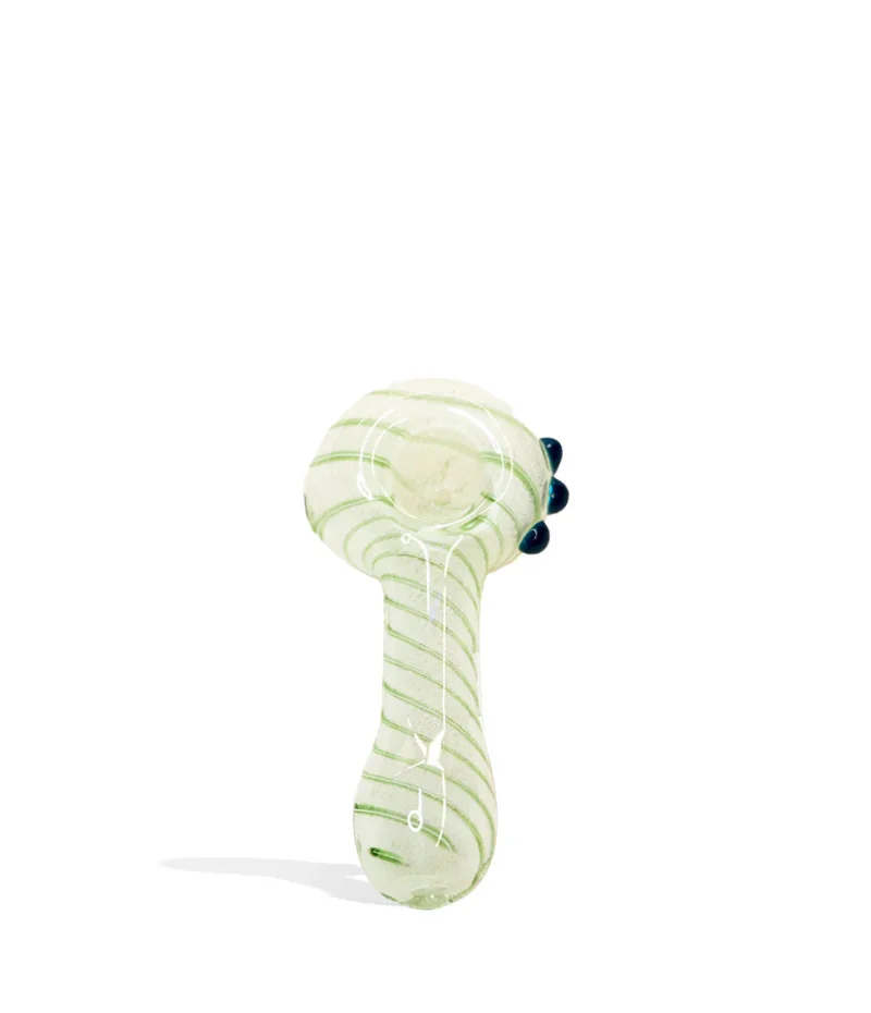 Radiant Dreams The Hand Pipe is a dry herb pipe with a sleek, glossy texture. Crafted from durable borosilicate glass, this portable pipe is built to last. Despite its compact 3-inch size, it boasts surprising features that catch your attention. Notably, it features a distinctive glow-in-the-dark element that makes it easy to locate if misplaced. This pipe offers an ergonomic design with a left-side carb for smooth airflow during inhalation. Three glass marbles on the side provide a comfortable and secure grip, adding a vibrant splash of color to its glowing aesthetic. This collection is designed to enhance your vaping experience by providing efficient devices and tools for every session you enjoy. What’s Included: (1) 3 inch Spiral Art Glow in the Dark Handpipe